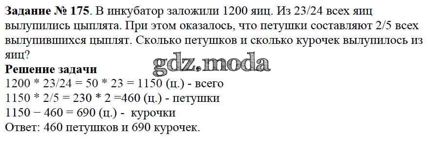 ОТВЕТ на задание № 175 Учебник по Математике 6 класс Виленкин