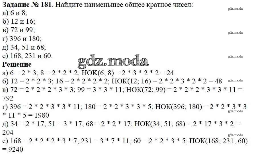 ОТВЕТ на задание № 181 Учебник по Математике 6 класс Виленкин