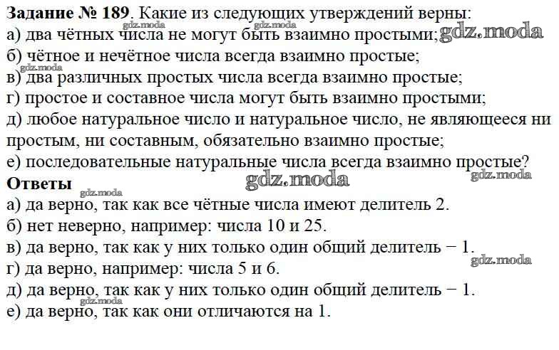 ОТВЕТ на задание № 189 Учебник по Математике 6 класс Виленкин
