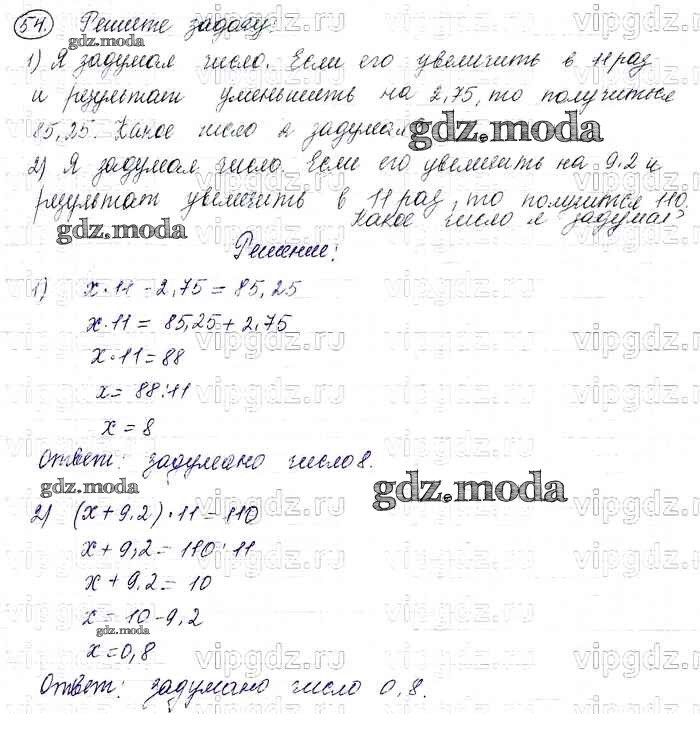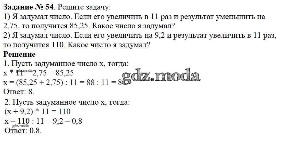 ОТВЕТ на задание № 54 Учебник по Математике 6 класс Виленкин