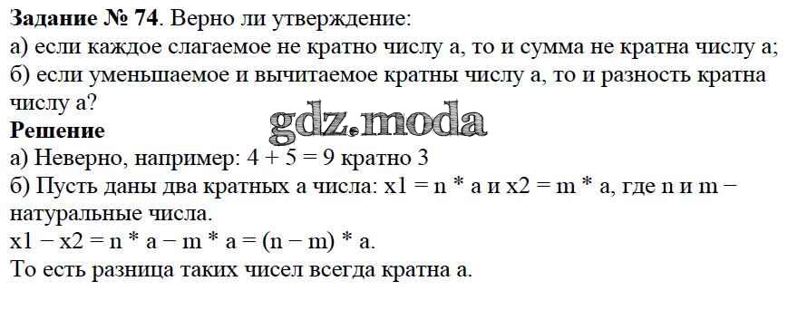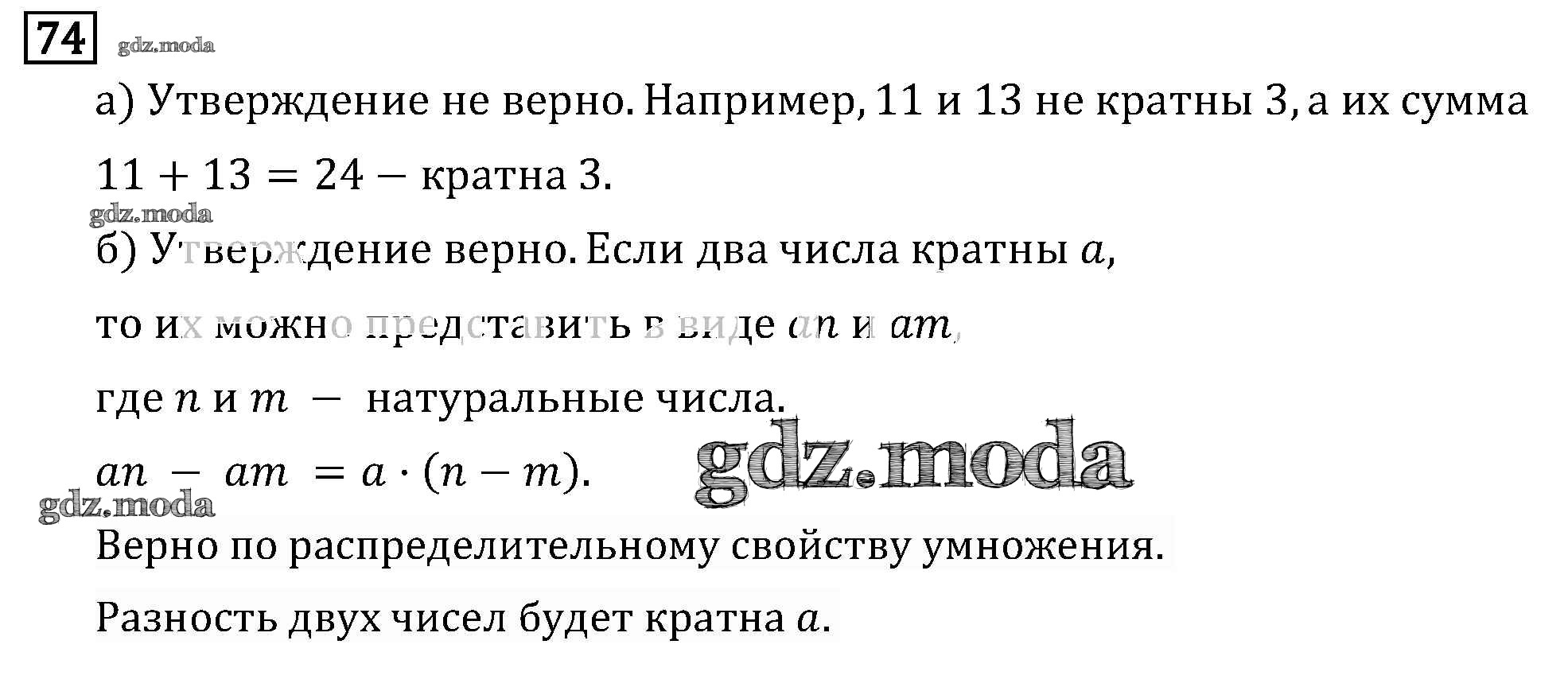 ОТВЕТ на задание № 74 Учебник по Математике 6 класс Виленкин