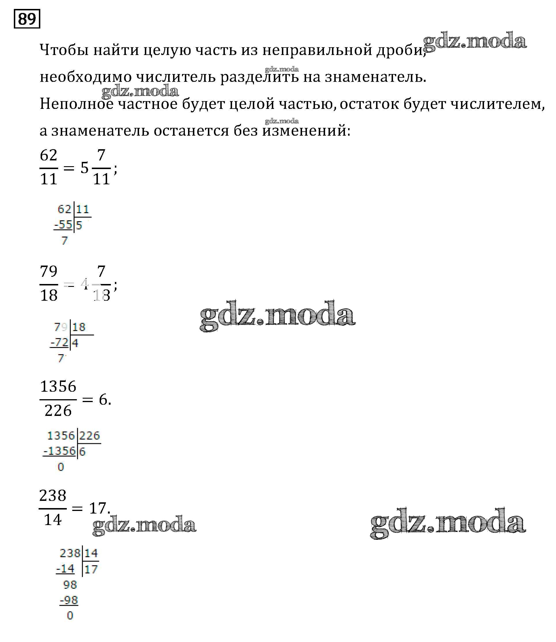 ОТВЕТ на задание № 89 Учебник по Математике 6 класс Виленкин