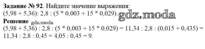 ОТВЕТ на задание № 92 Учебник по Математике 6 класс Виленкин