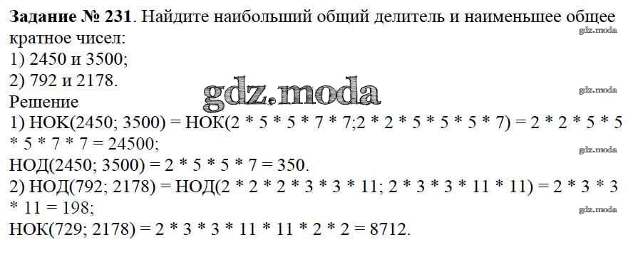 ОТВЕТ на задание № 231 Учебник по Математике 6 класс Виленкин