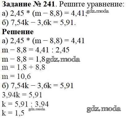 ОТВЕТ на задание № 241 Учебник по Математике 6 класс Виленкин