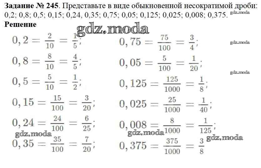ОТВЕТ на задание № 245 Учебник по Математике 6 класс Виленкин