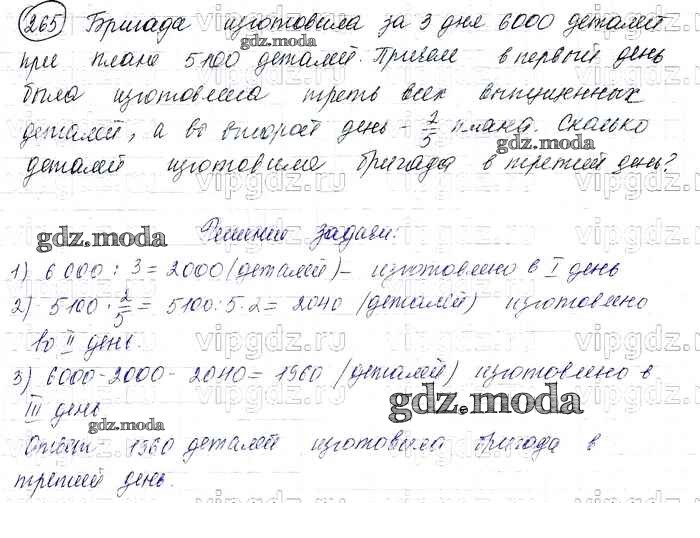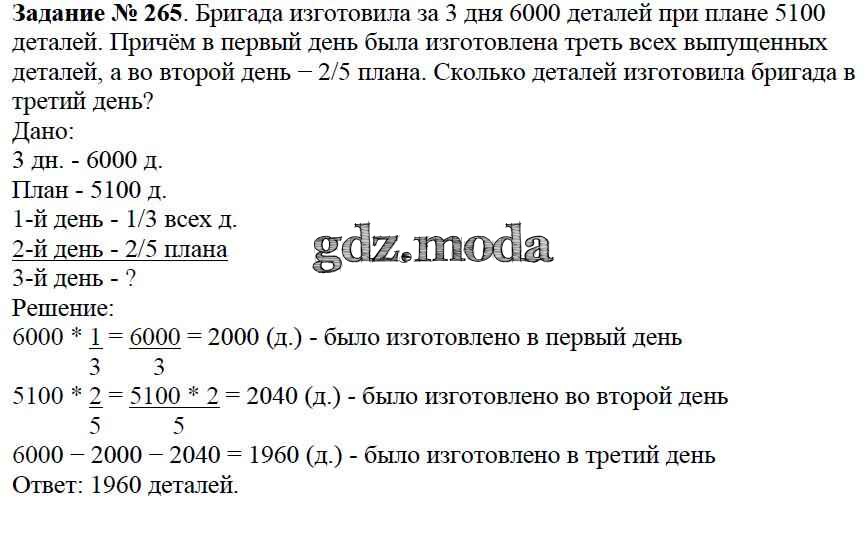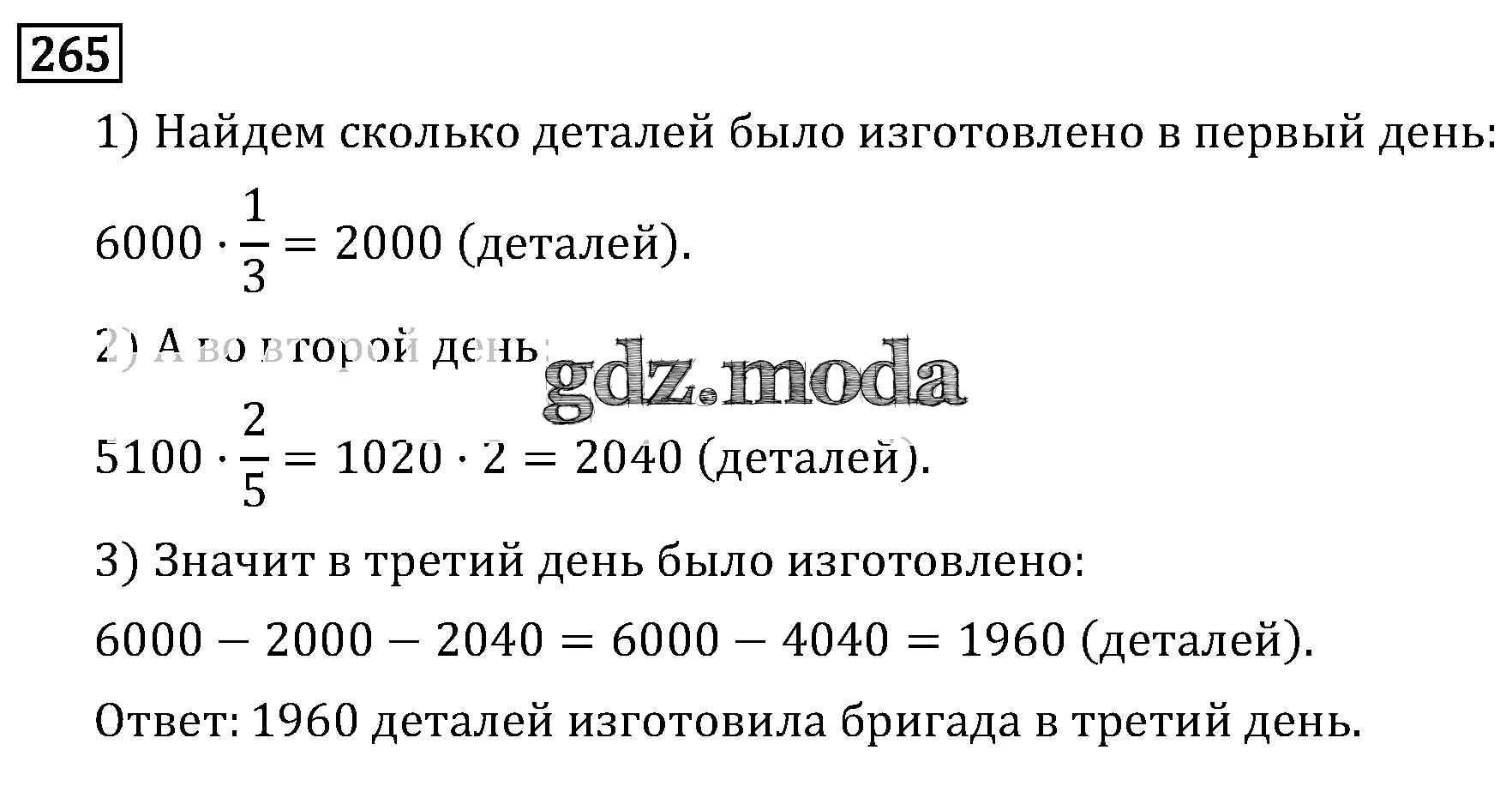 ОТВЕТ на задание № 265 Учебник по Математике 6 класс Виленкин