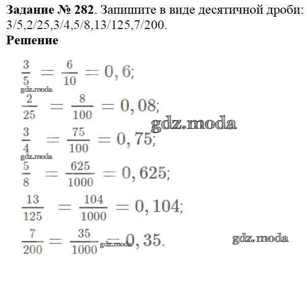 ОТВЕТ на задание № 282 Учебник по Математике 6 класс Виленкин
