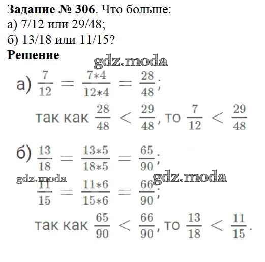 ОТВЕТ на задание № 306 Учебник по Математике 6 класс Виленкин