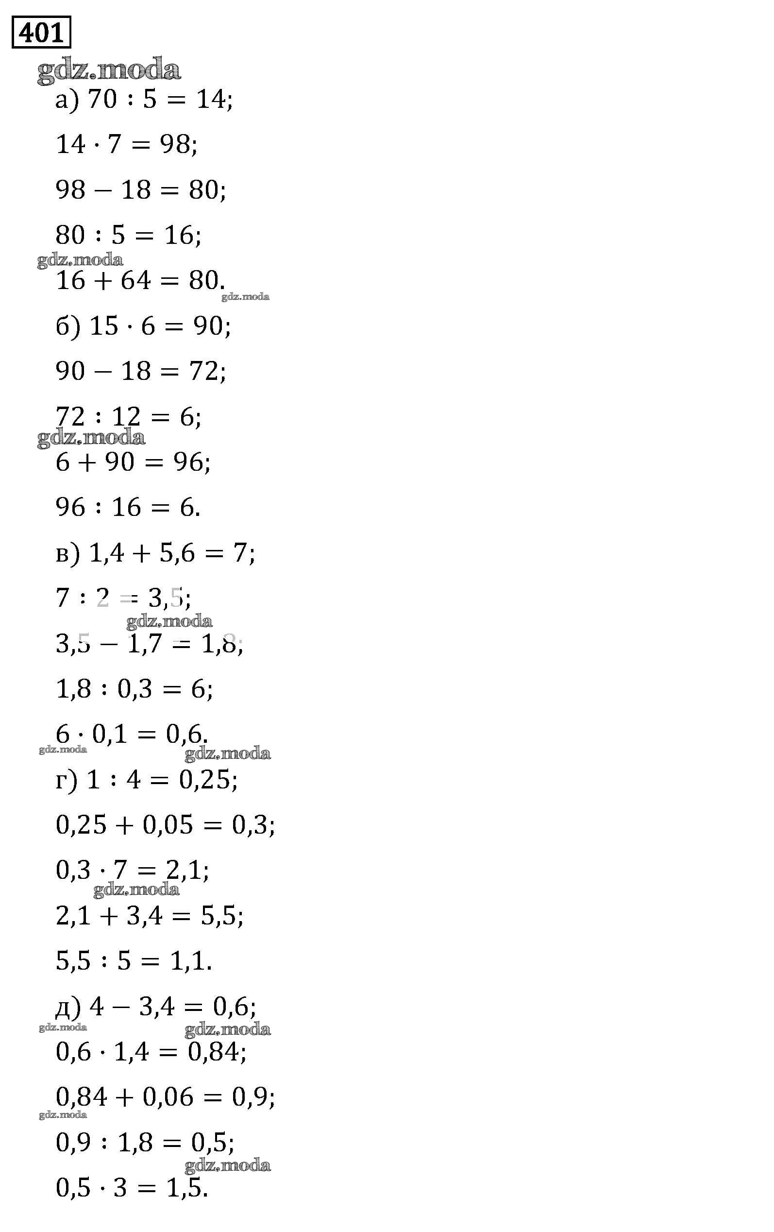 ОТВЕТ на задание № 401 Учебник по Математике 6 класс Виленкин