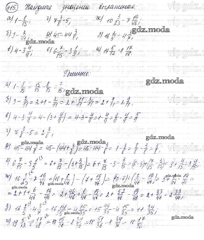 ОТВЕТ на задание № 415 Учебник по Математике 6 класс Виленкин