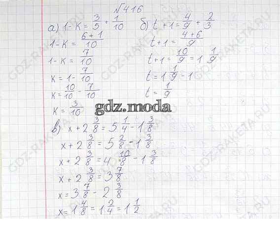 ОТВЕТ на задание № 416 Учебник по Математике 6 класс Виленкин