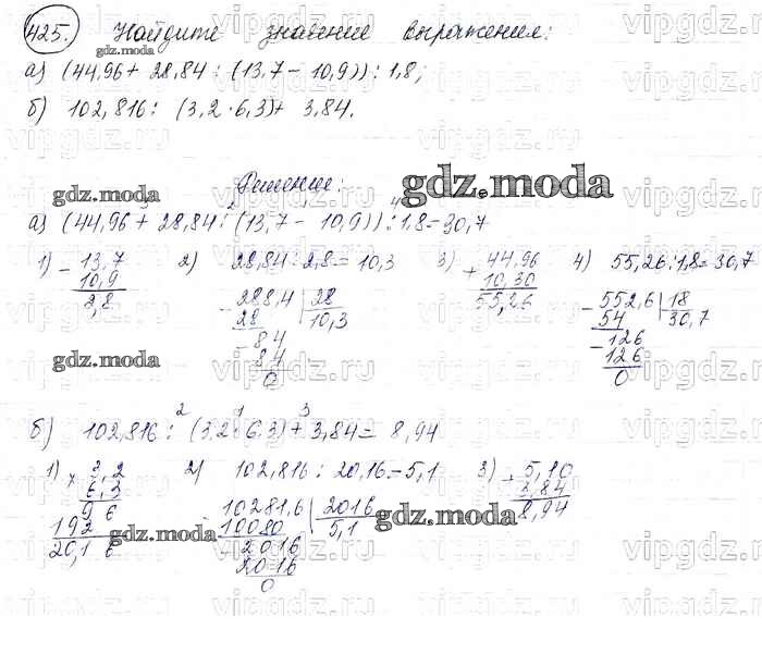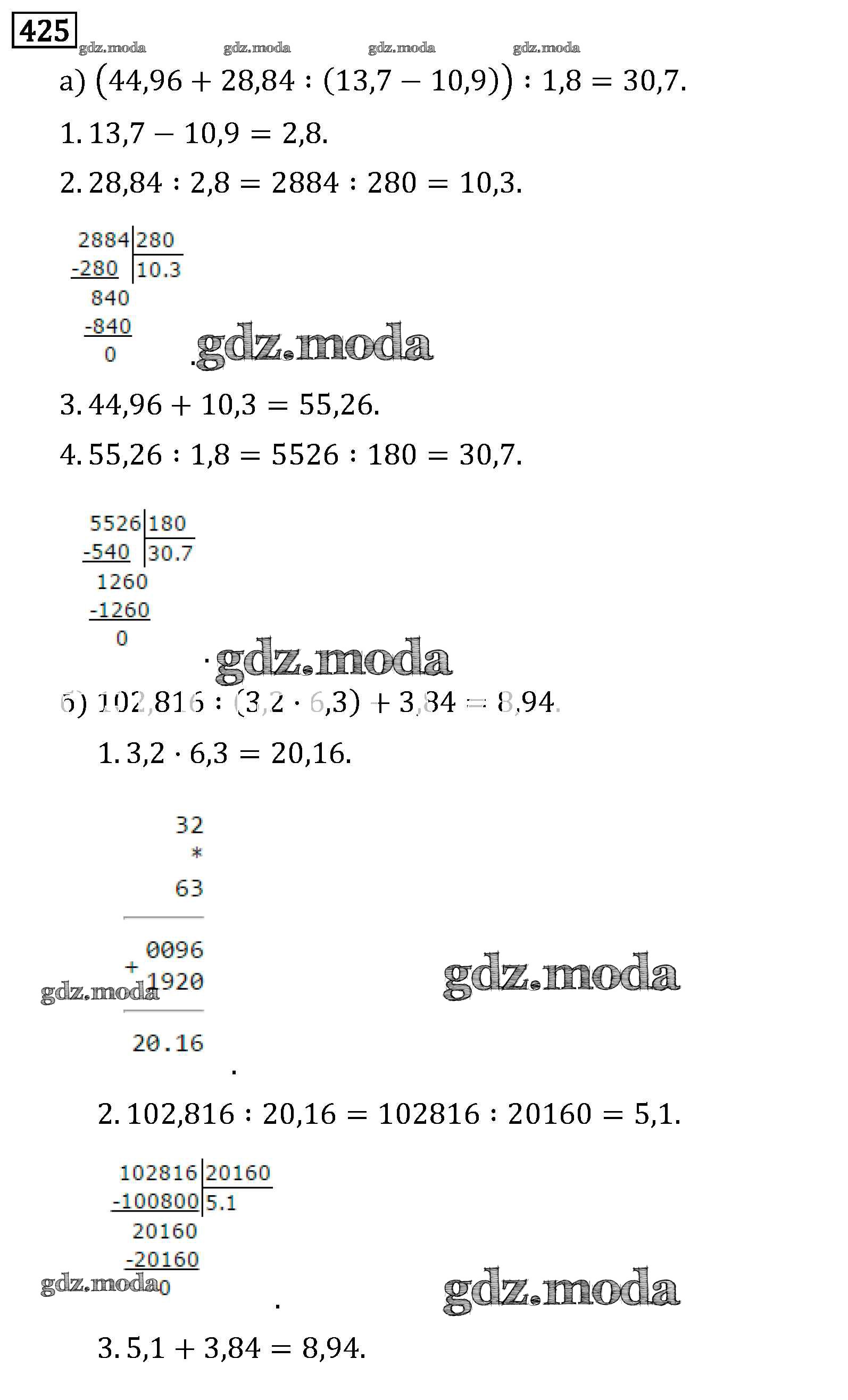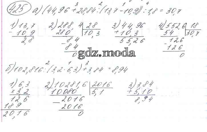 ОТВЕТ на задание № 425 Учебник по Математике 6 класс Виленкин