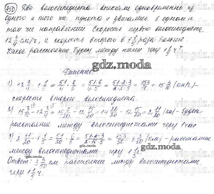 ОТВЕТ на задание № 450 Учебник по Математике 6 класс Виленкин