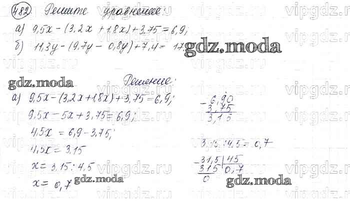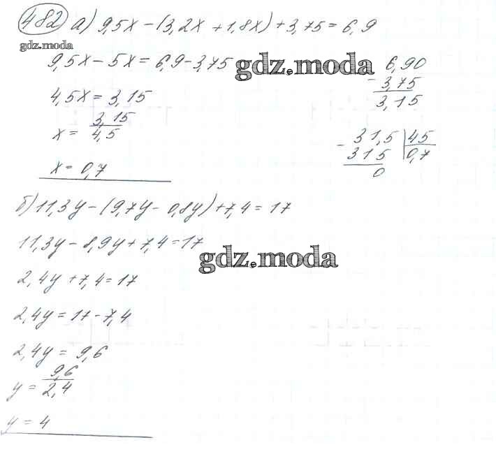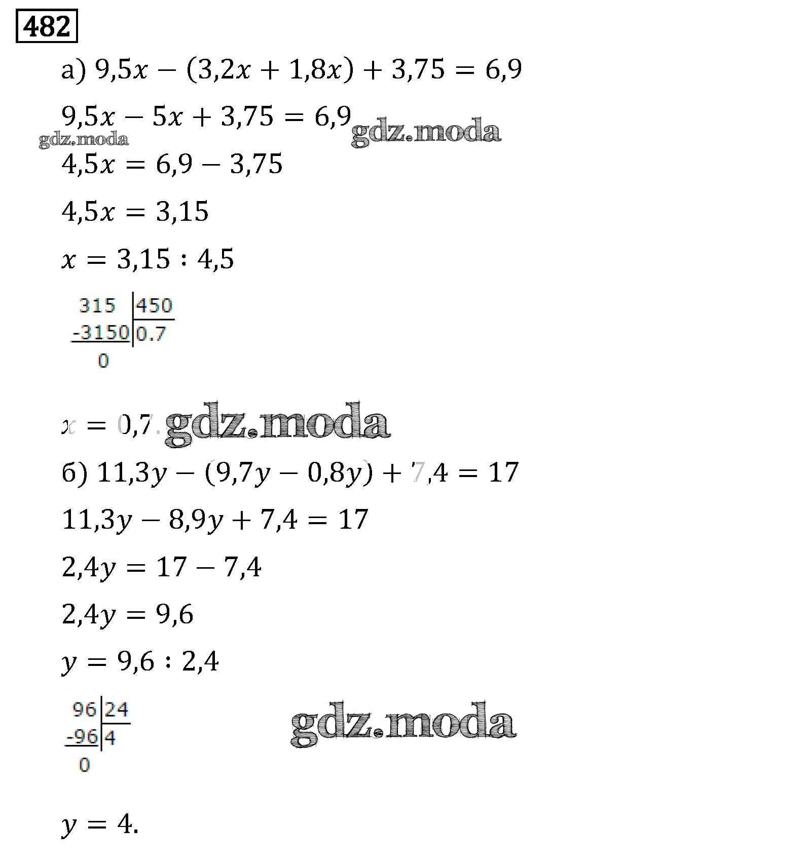 ОТВЕТ на задание № 482 Учебник по Математике 6 класс Виленкин