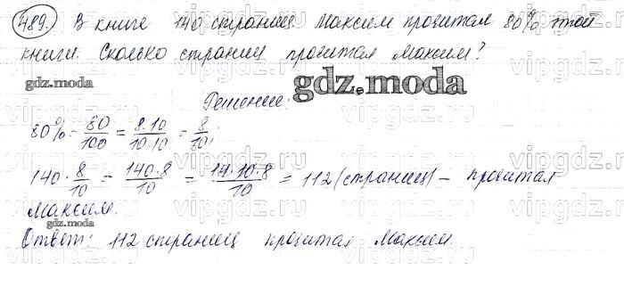 ОТВЕТ на задание № 489 Учебник по Математике 6 класс Виленкин