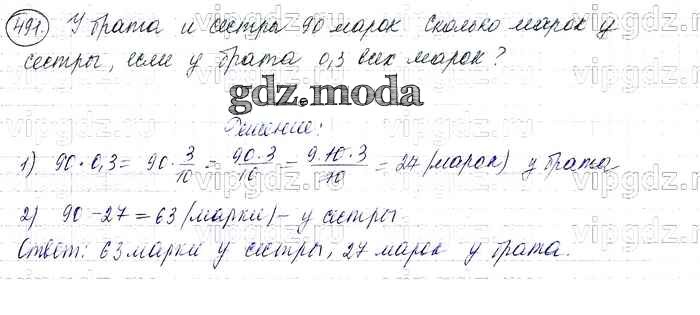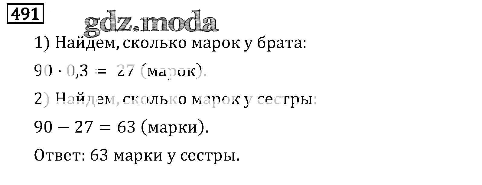 ОТВЕТ на задание № 491 Учебник по Математике 6 класс Виленкин