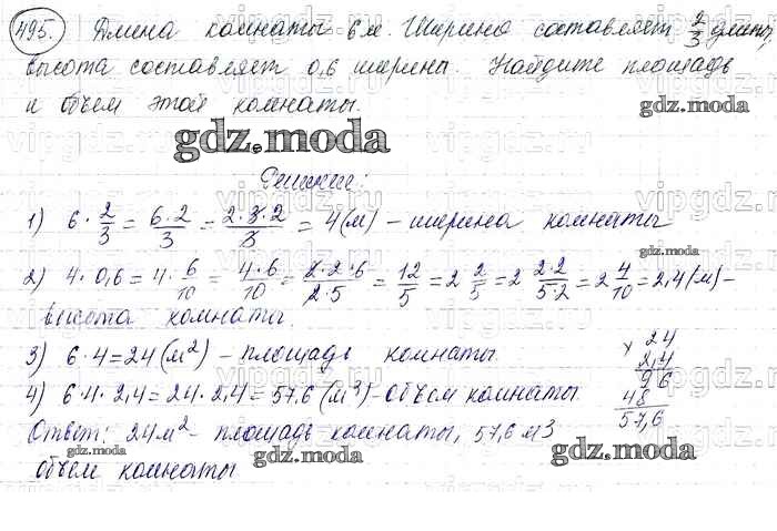 ОТВЕТ на задание № 495 Учебник по Математике 6 класс Виленкин