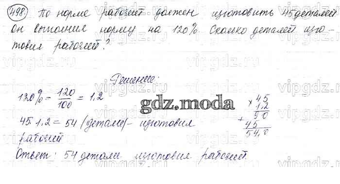 ОТВЕТ на задание № 498 Учебник по Математике 6 класс Виленкин
