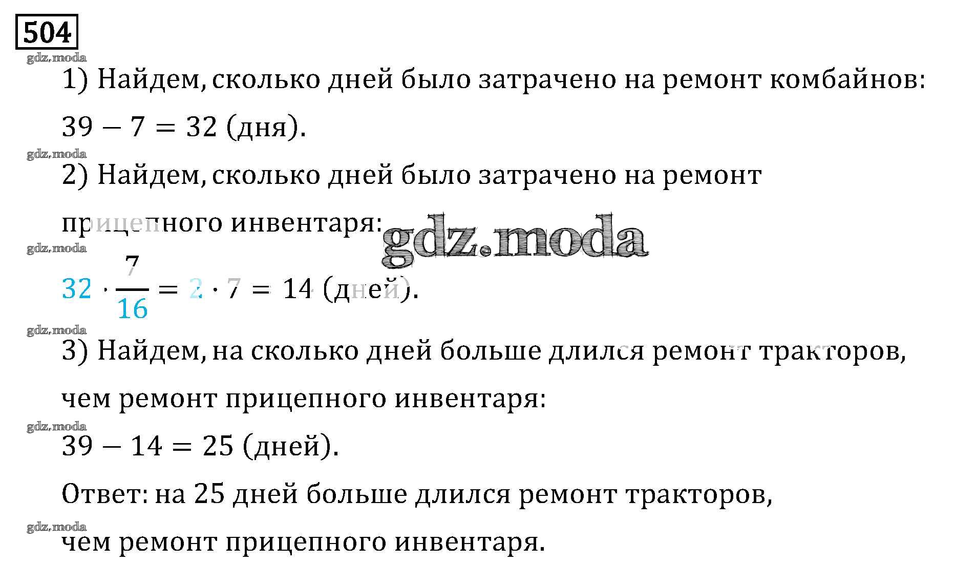 ОТВЕТ на задание № 504 Учебник по Математике 6 класс Виленкин