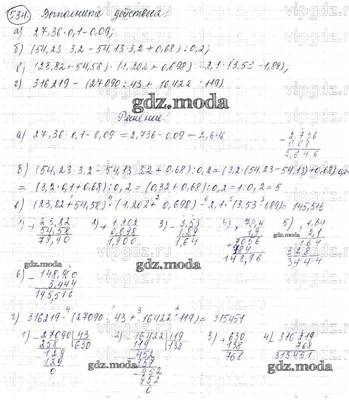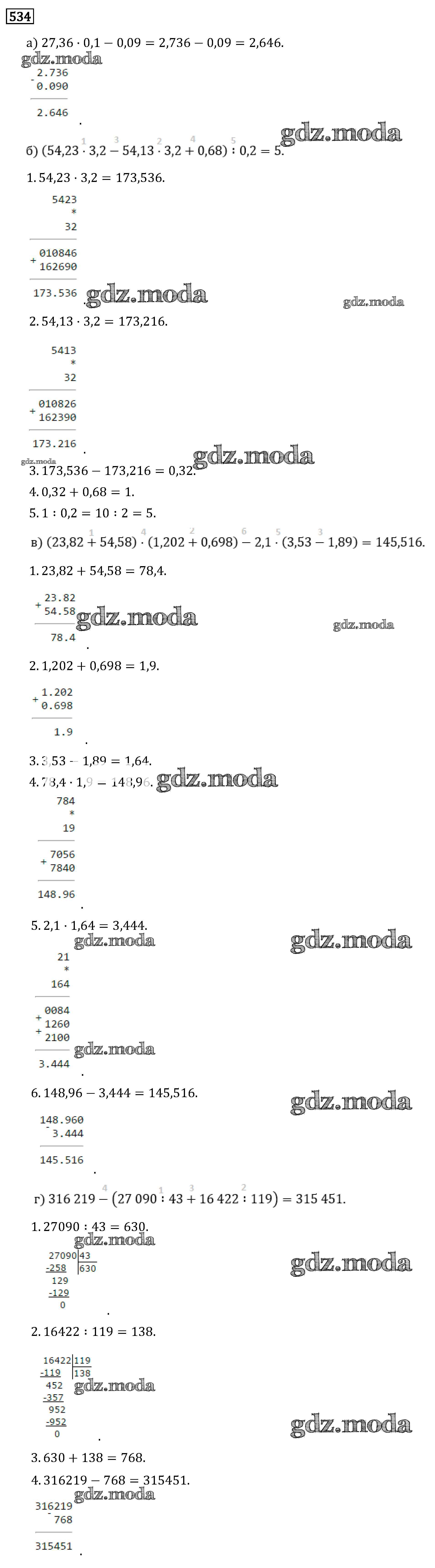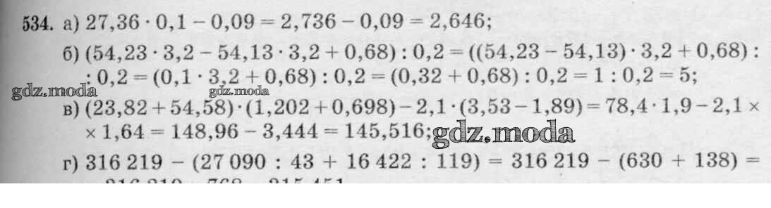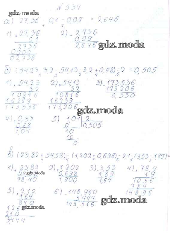 ОТВЕТ на задание № 534 Учебник по Математике 6 класс Виленкин