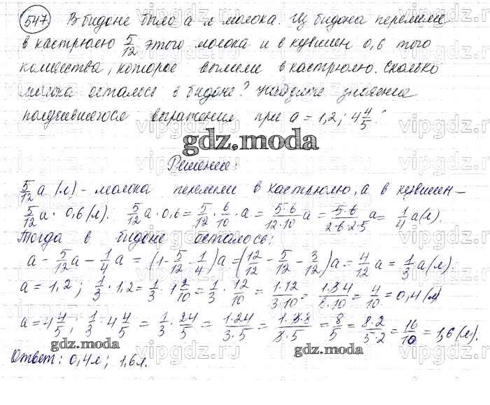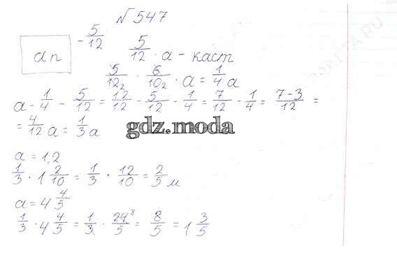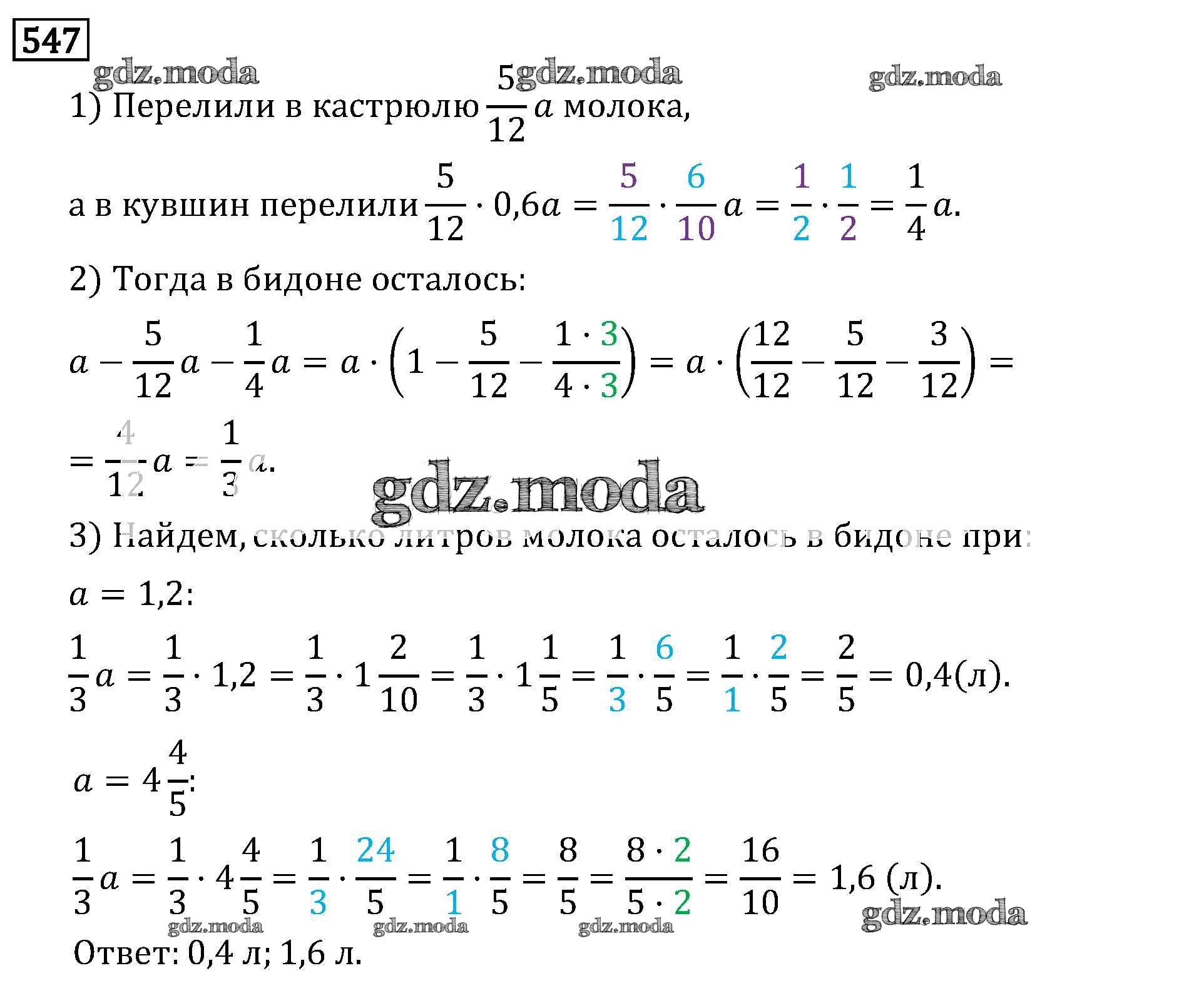 ОТВЕТ на задание № 547 Учебник по Математике 6 класс Виленкин