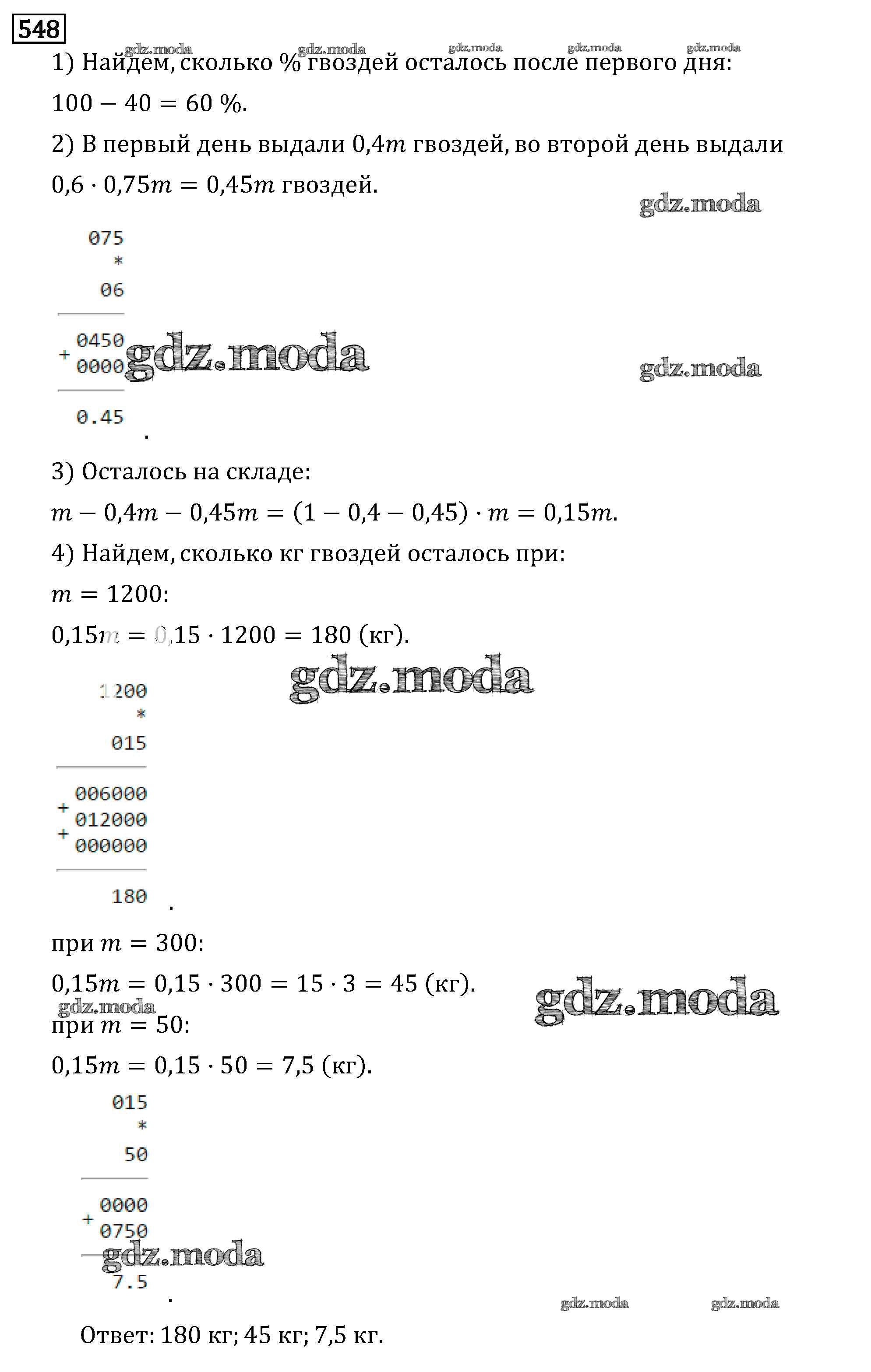 ОТВЕТ на задание № 548 Учебник по Математике 6 класс Виленкин