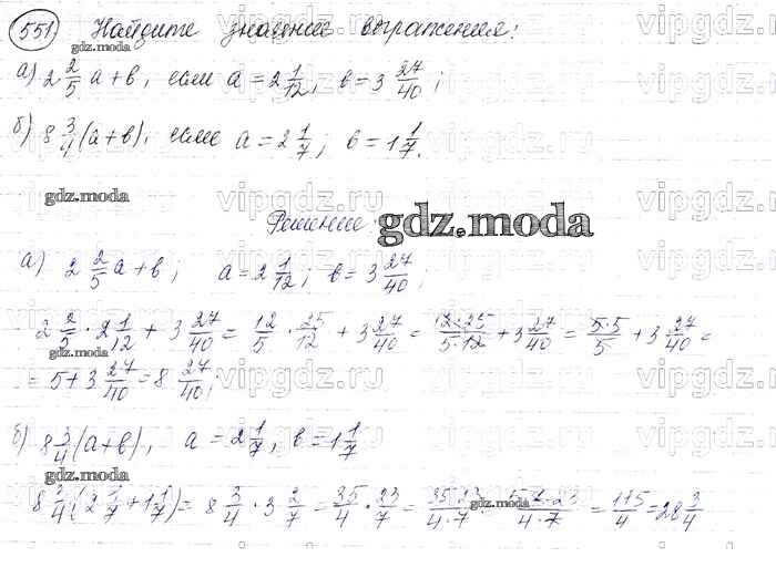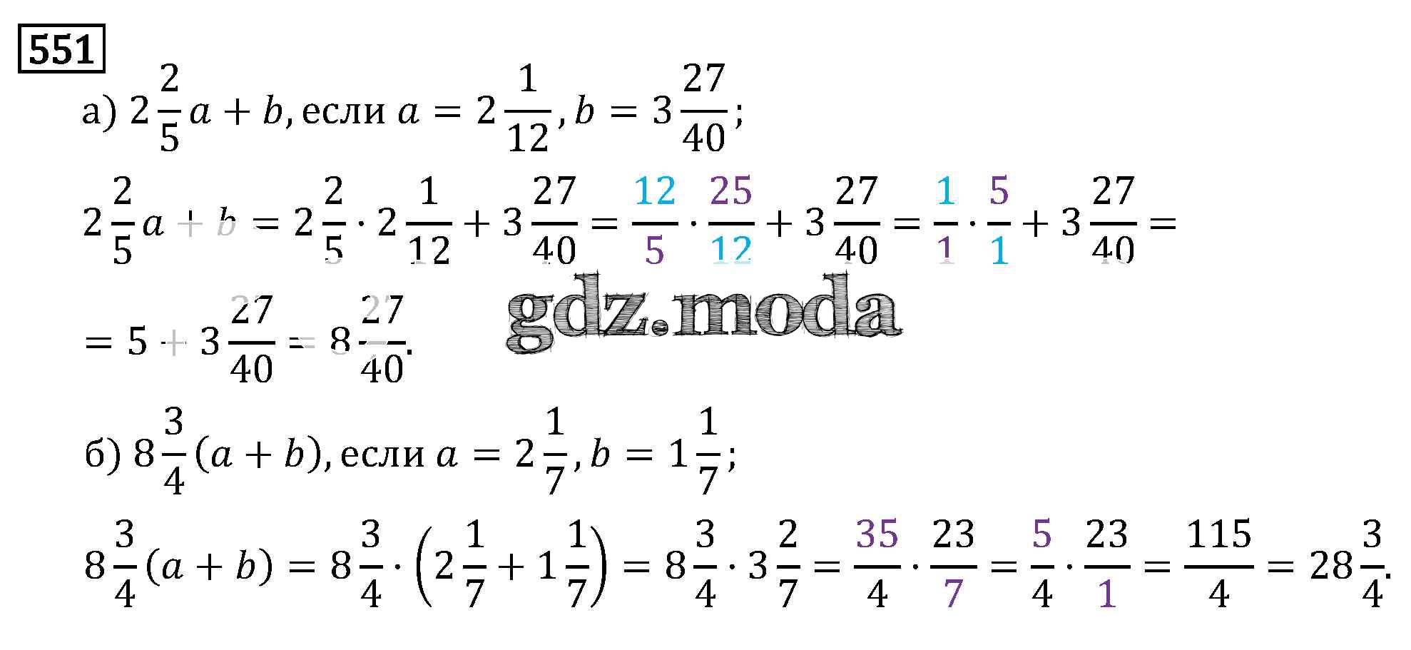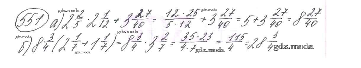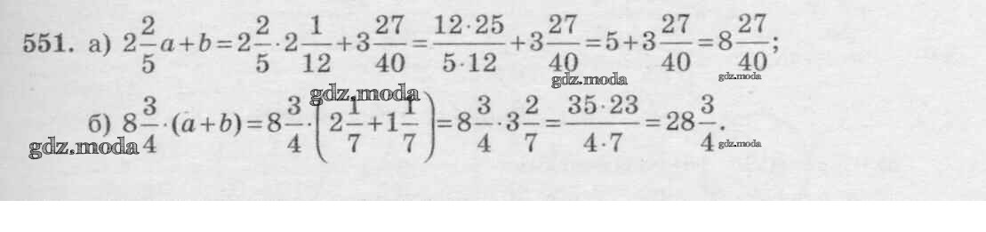 ОТВЕТ на задание № 551 Учебник по Математике 6 класс Виленкин