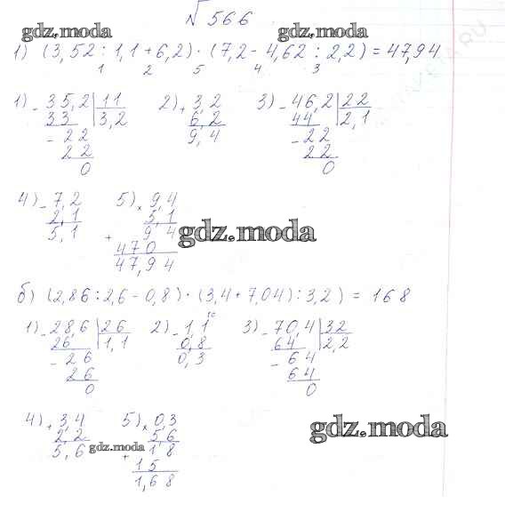 ОТВЕТ на задание № 566 Учебник по Математике 6 класс Виленкин