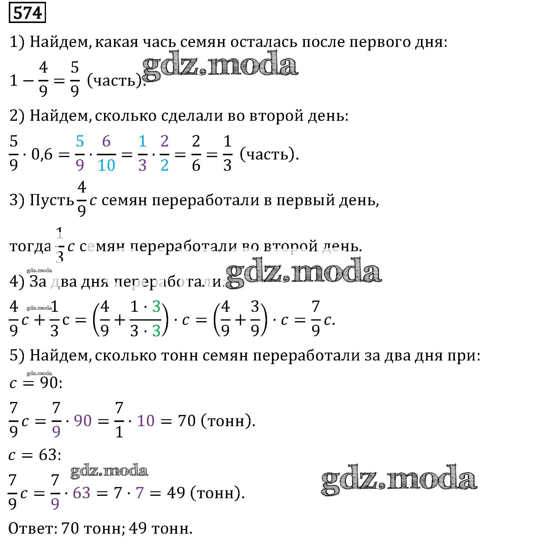 ОТВЕТ на задание № 574 Учебник по Математике 6 класс Виленкин