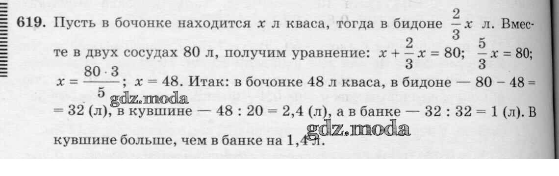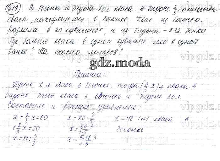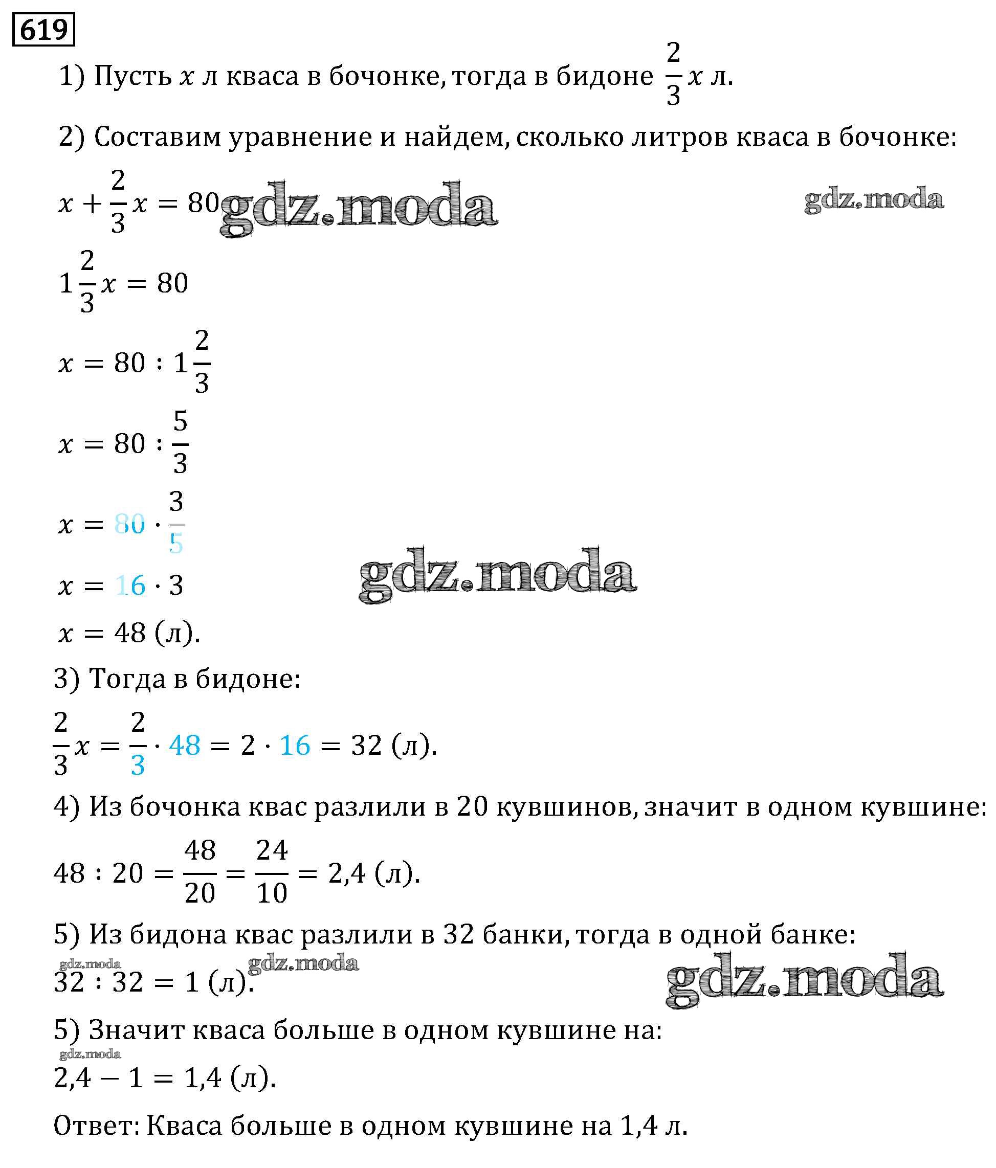 ОТВЕТ на задание № 619 Учебник по Математике 6 класс Виленкин