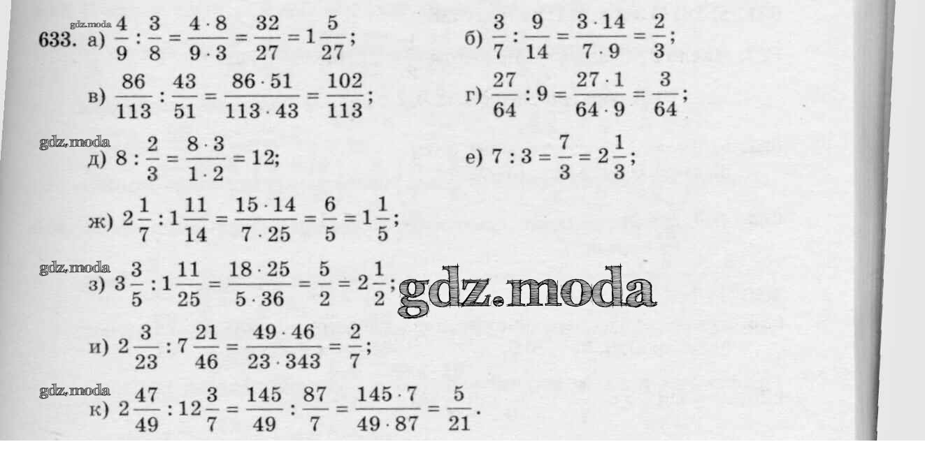 ОТВЕТ на задание № 633 Учебник по Математике 6 класс Виленкин