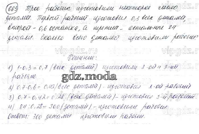 ОТВЕТ на задание № 663 Учебник по Математике 6 класс Виленкин