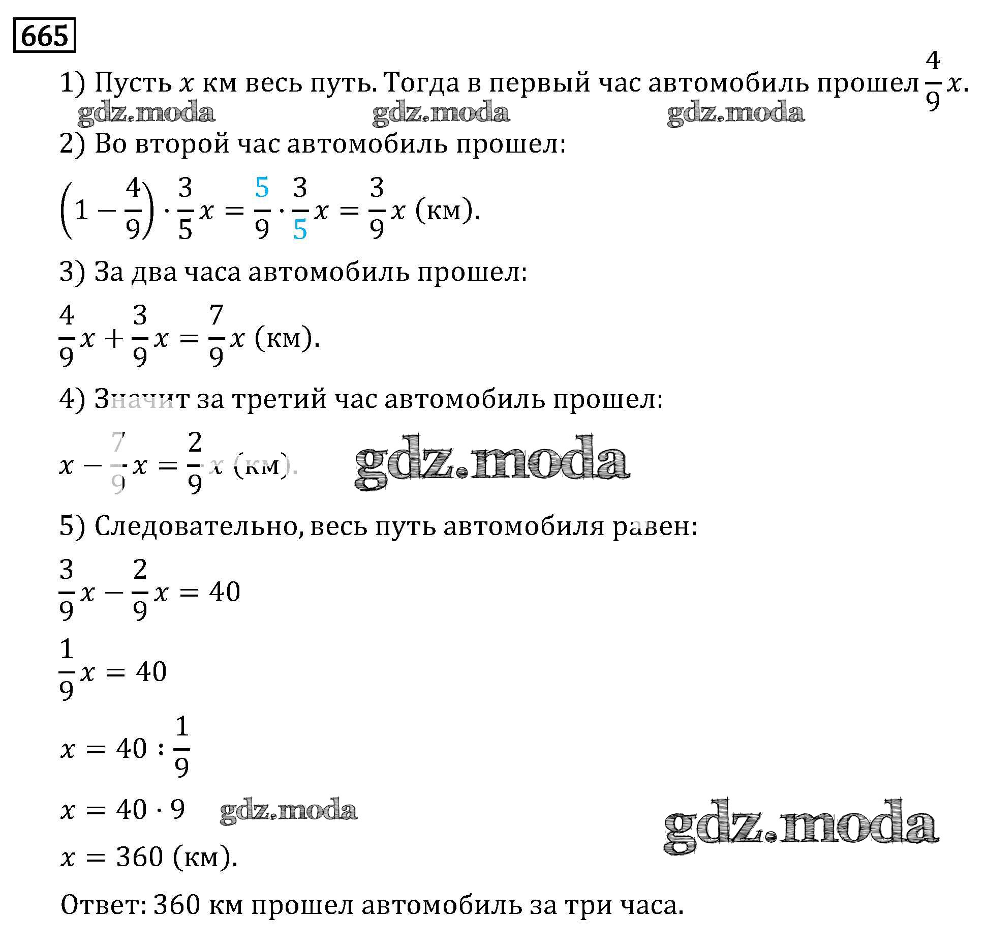 ОТВЕТ на задание № 665 Учебник по Математике 6 класс Виленкин