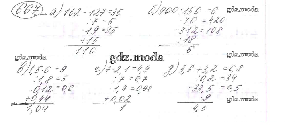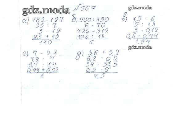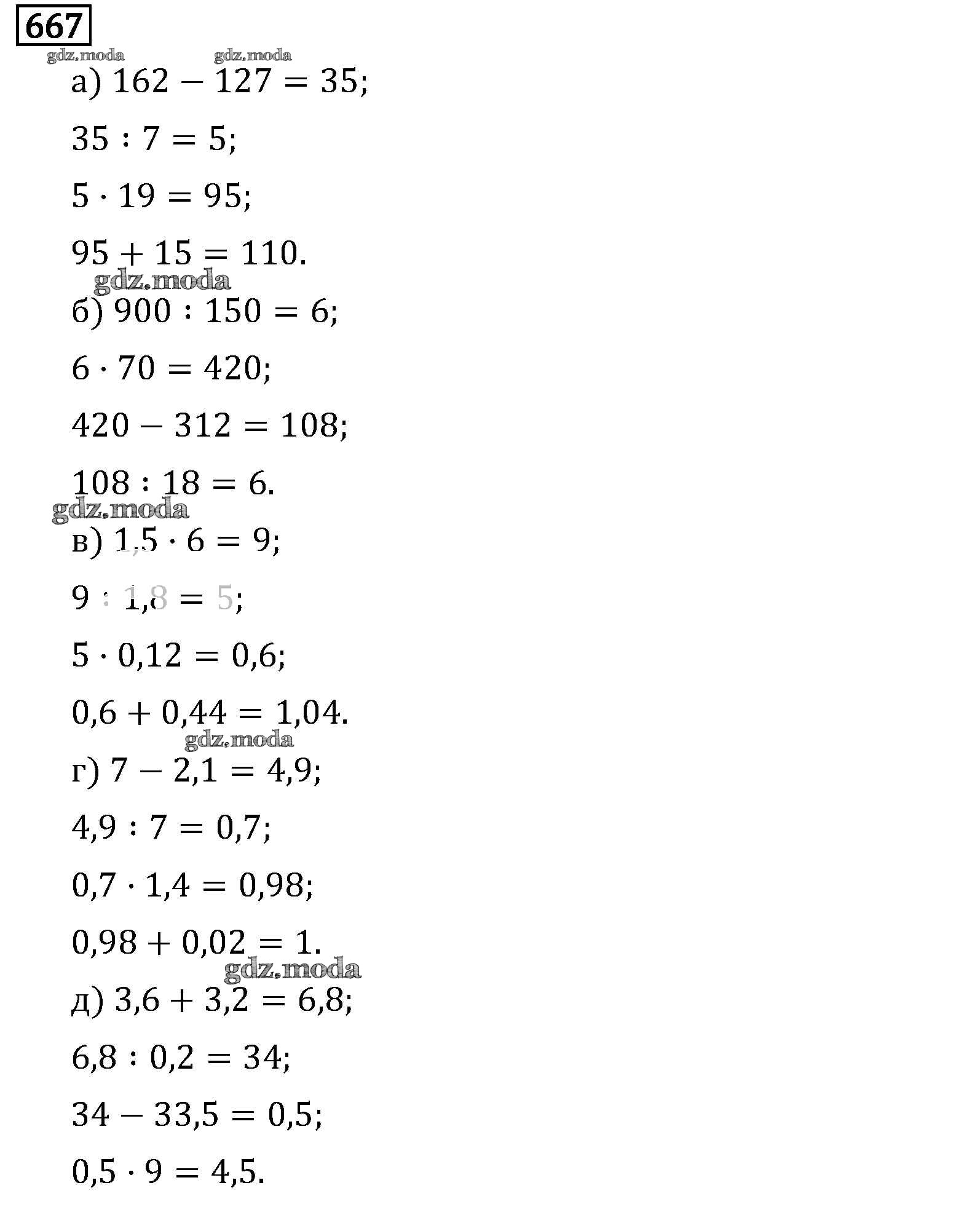 ОТВЕТ на задание № 667 Учебник по Математике 6 класс Виленкин