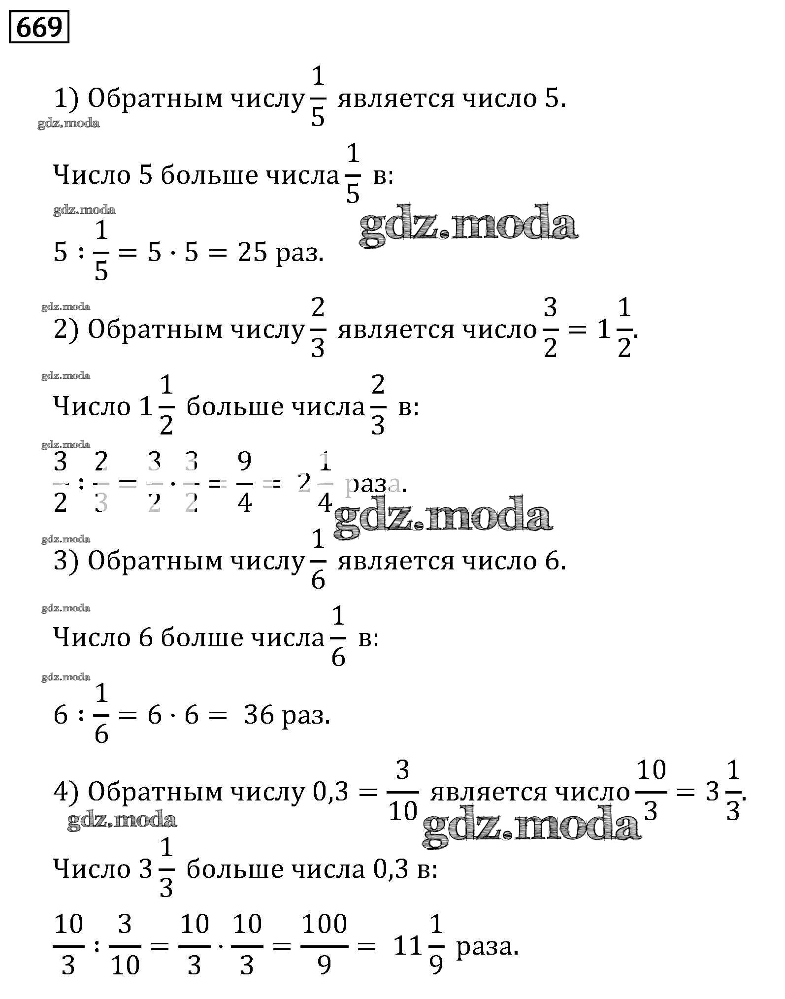 ОТВЕТ на задание № 669 Учебник по Математике 6 класс Виленкин