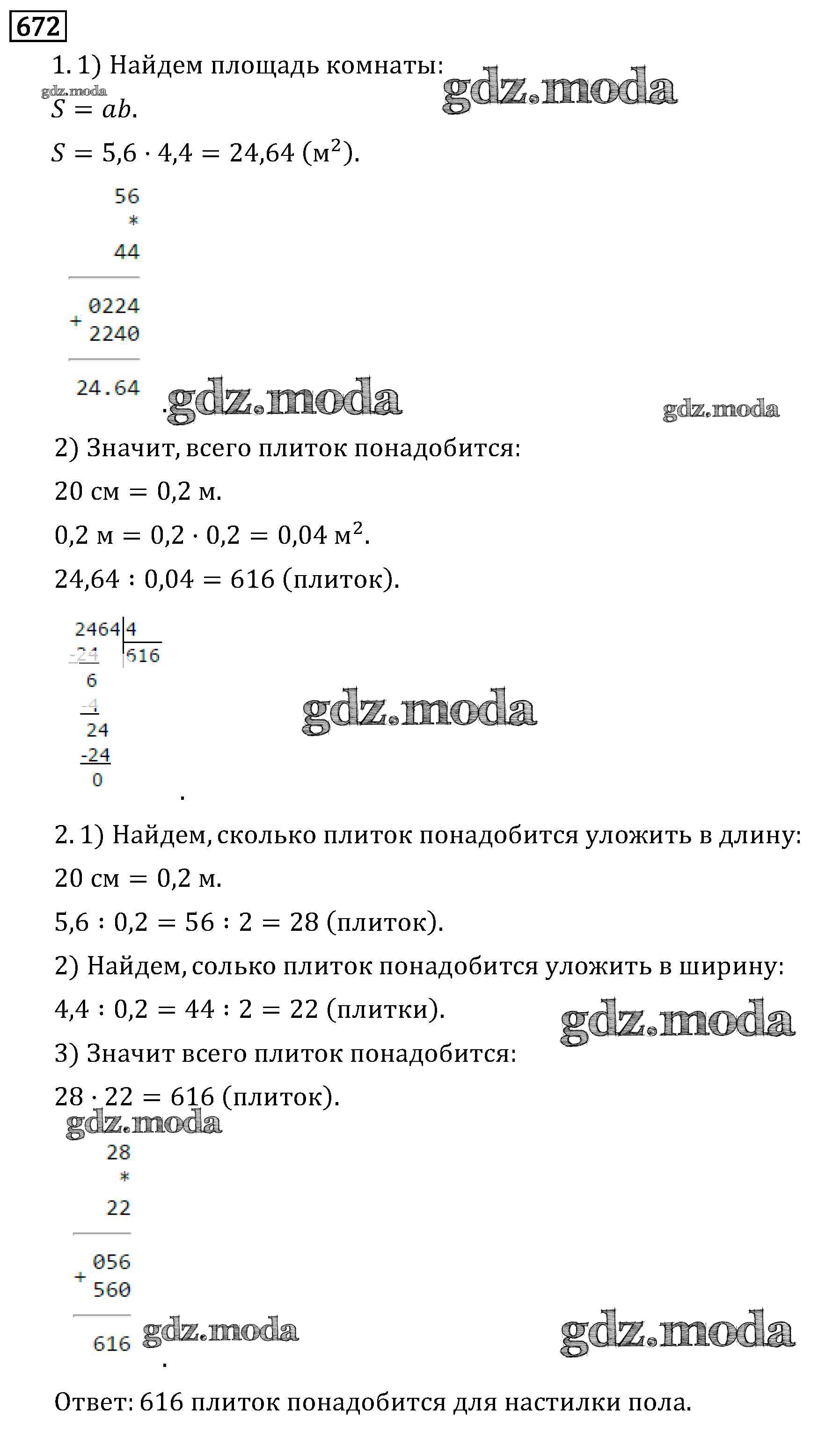 ОТВЕТ на задание № 672 Учебник по Математике 6 класс Виленкин