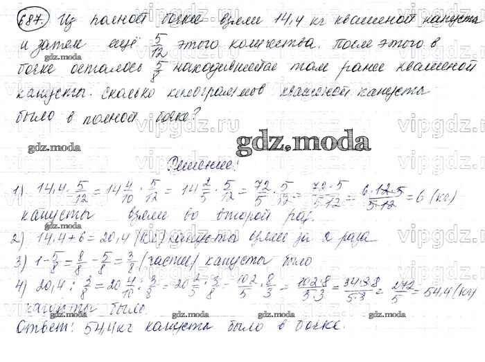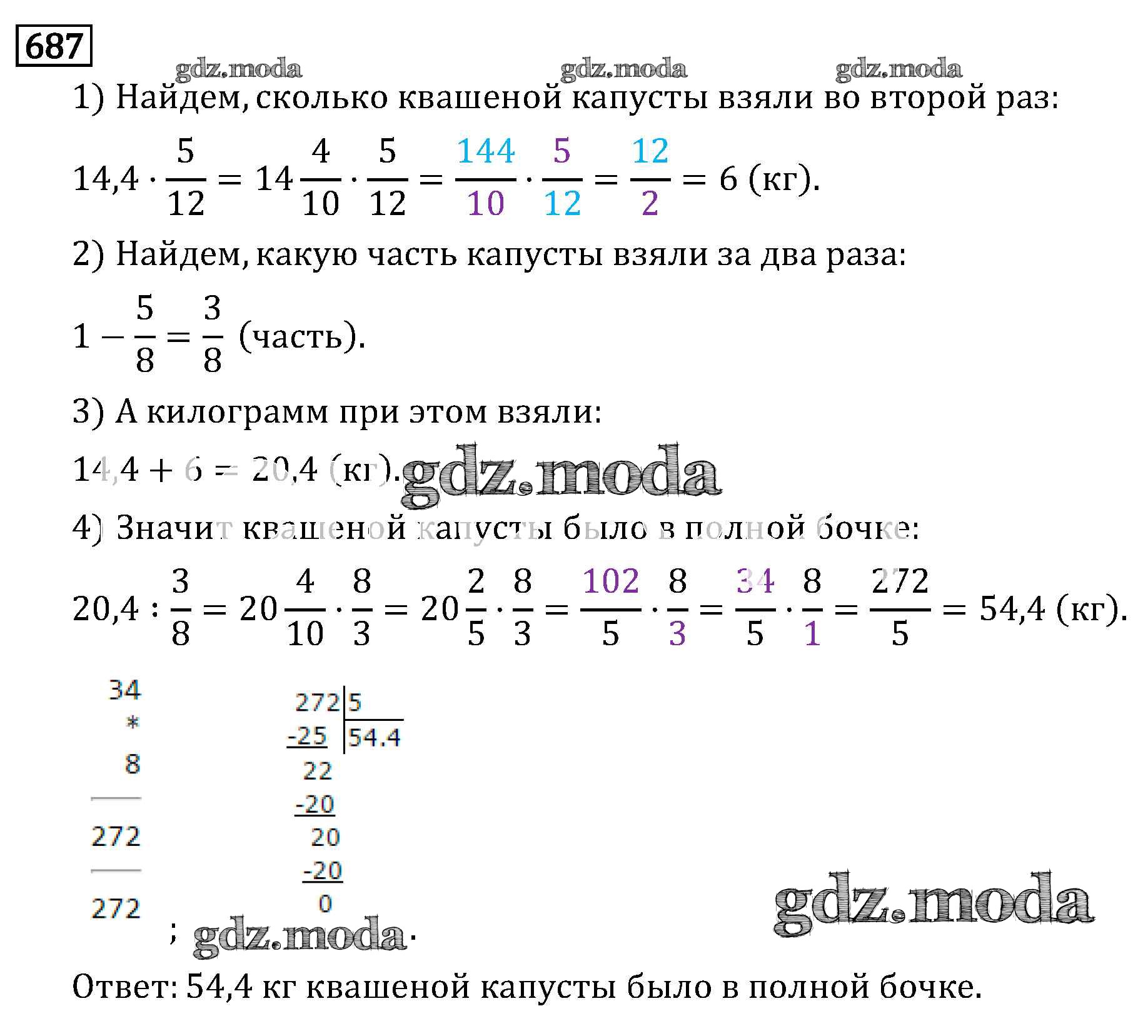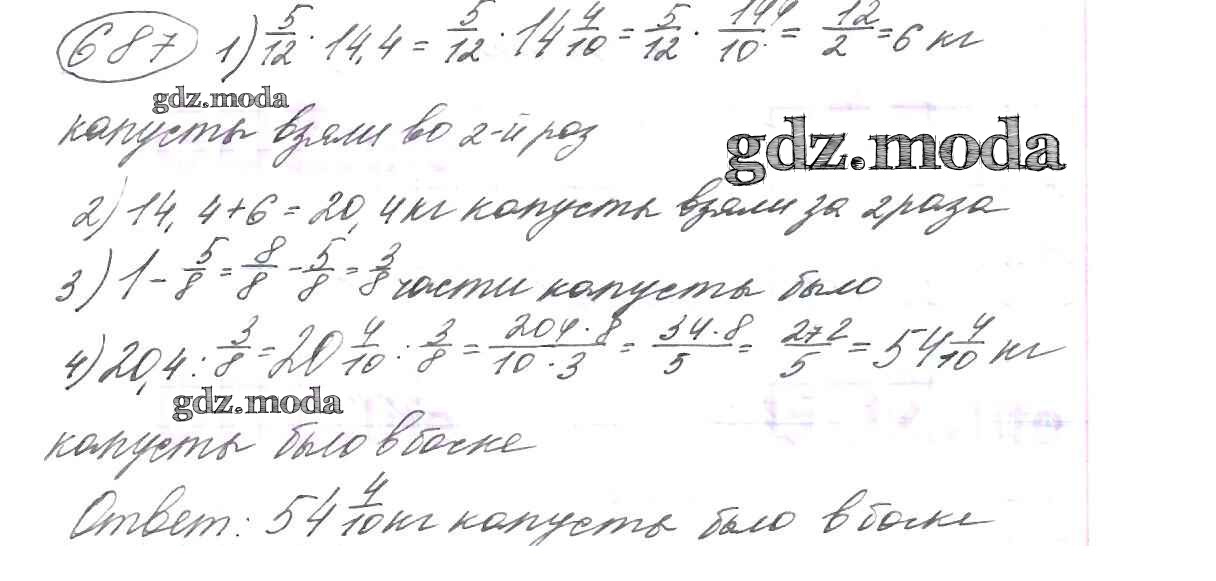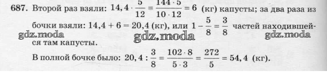 ОТВЕТ на задание № 687 Учебник по Математике 6 класс Виленкин