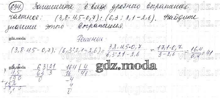 ОТВЕТ на задание № 694 Учебник по Математике 6 класс Виленкин