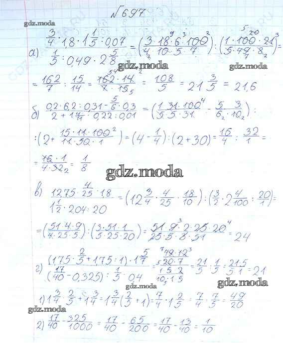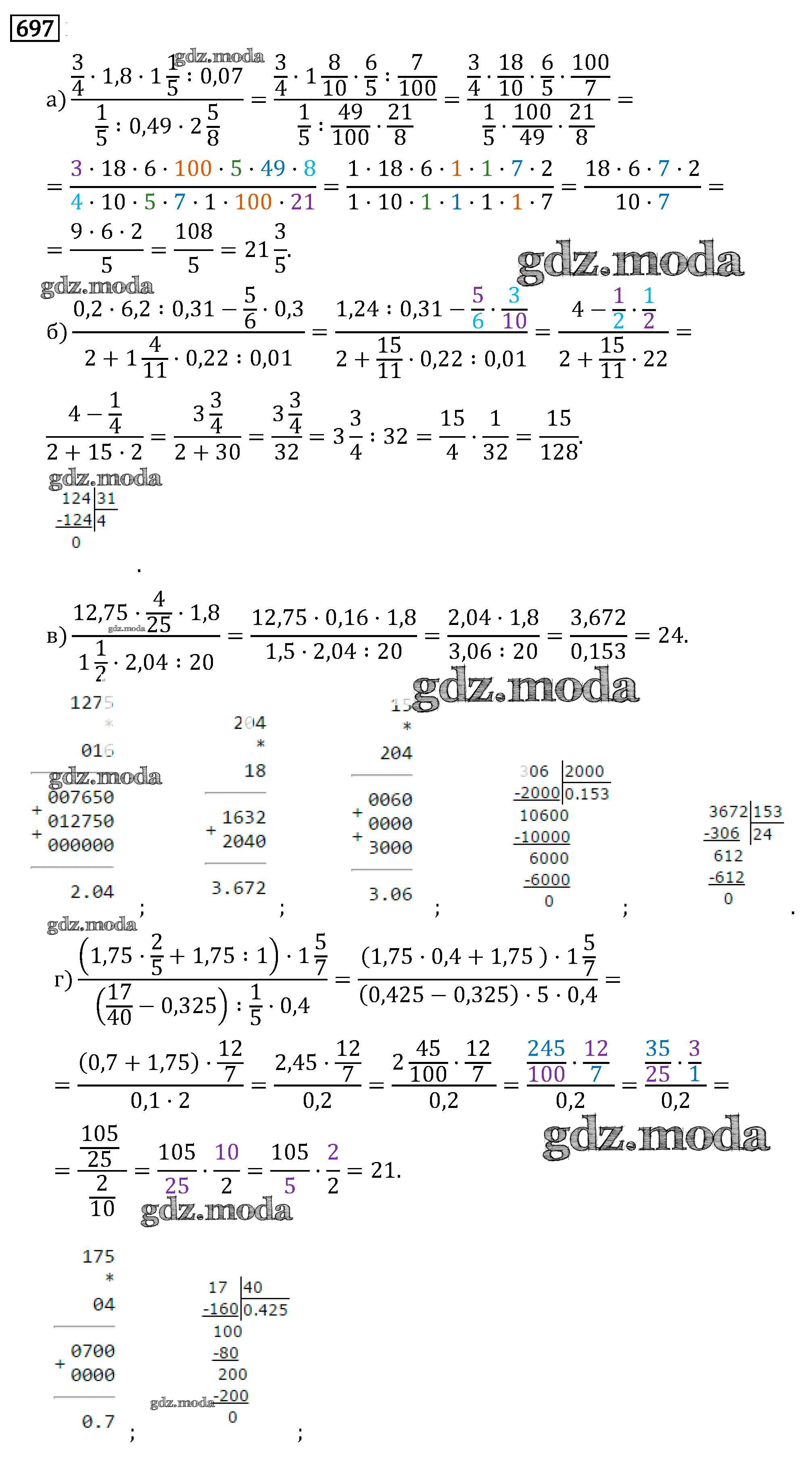 ОТВЕТ на задание № 697 Учебник по Математике 6 класс Виленкин