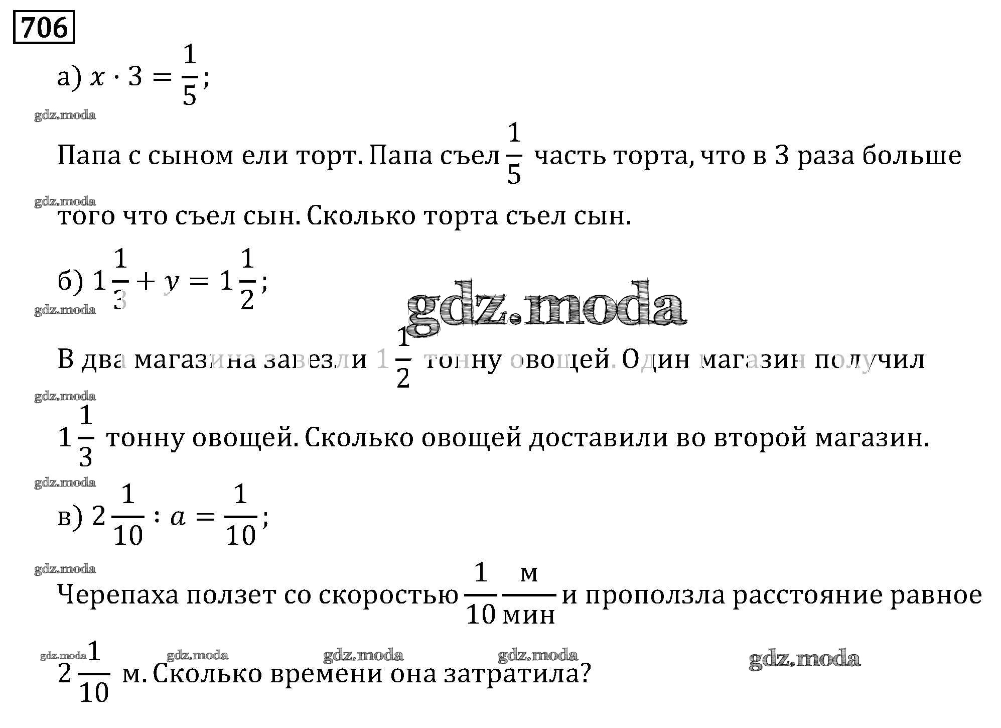 ОТВЕТ на задание № 706 Учебник по Математике 6 класс Виленкин