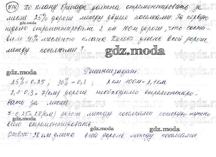 ОТВЕТ на задание № 714 Учебник по Математике 6 класс Виленкин