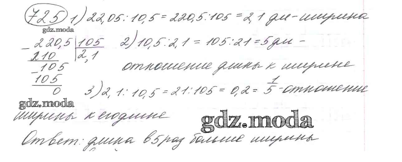 ОТВЕТ на задание № 725 Учебник по Математике 6 класс Виленкин
