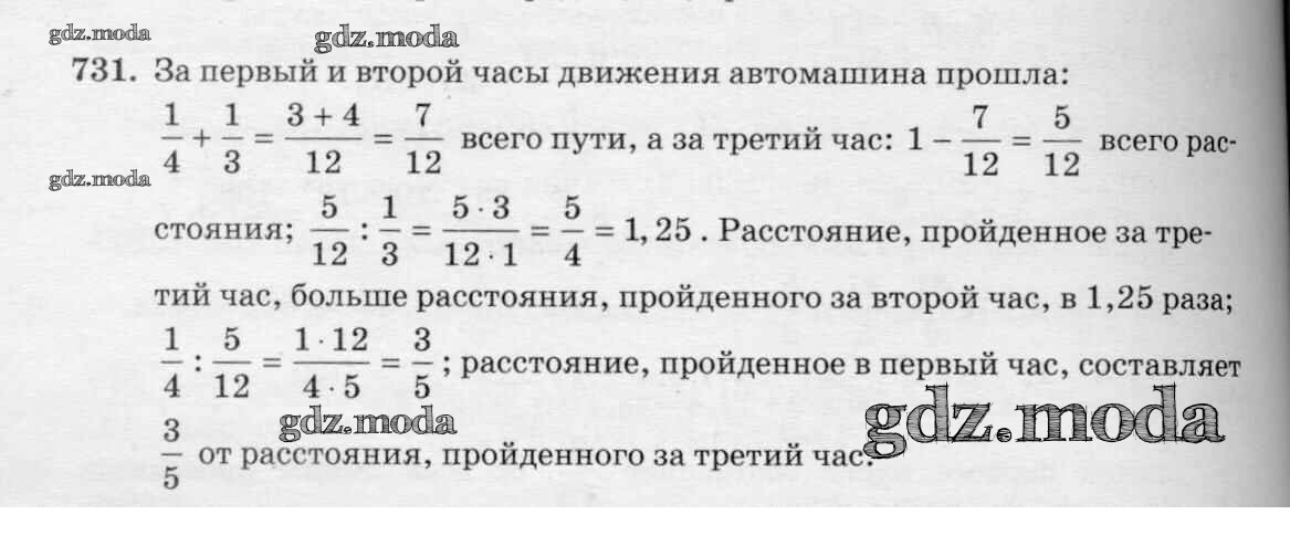 ОТВЕТ на задание № 731 Учебник по Математике 6 класс Виленкин