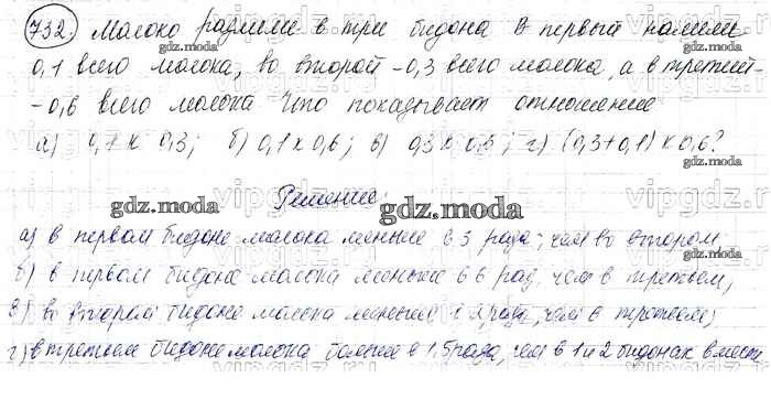 ОТВЕТ на задание № 732 Учебник по Математике 6 класс Виленкин