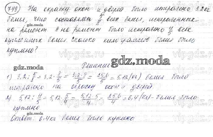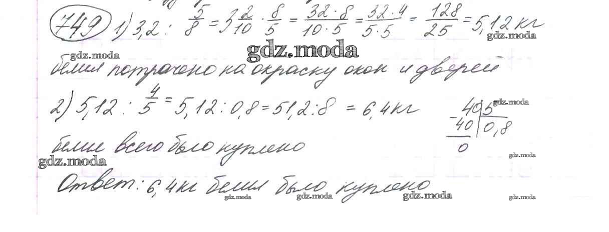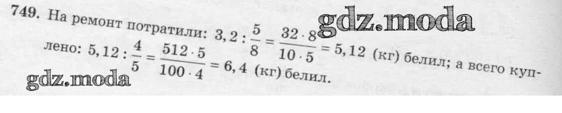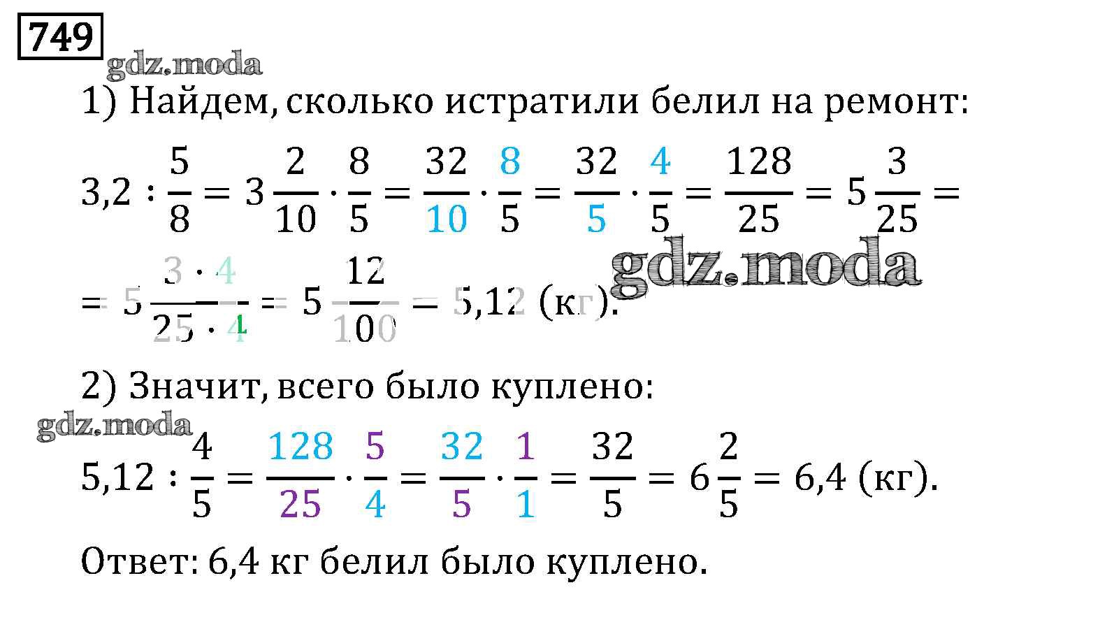 ОТВЕТ на задание № 749 Учебник по Математике 6 класс Виленкин
