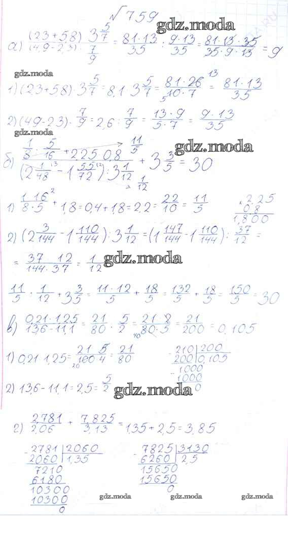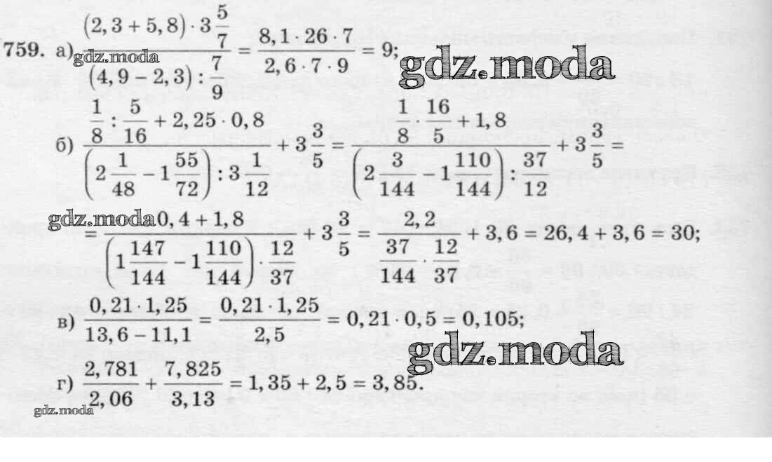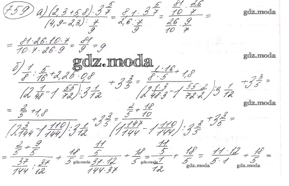 ОТВЕТ на задание № 759 Учебник по Математике 6 класс Виленкин