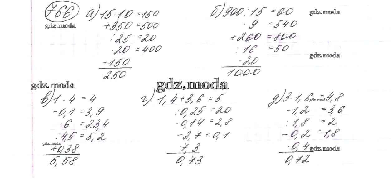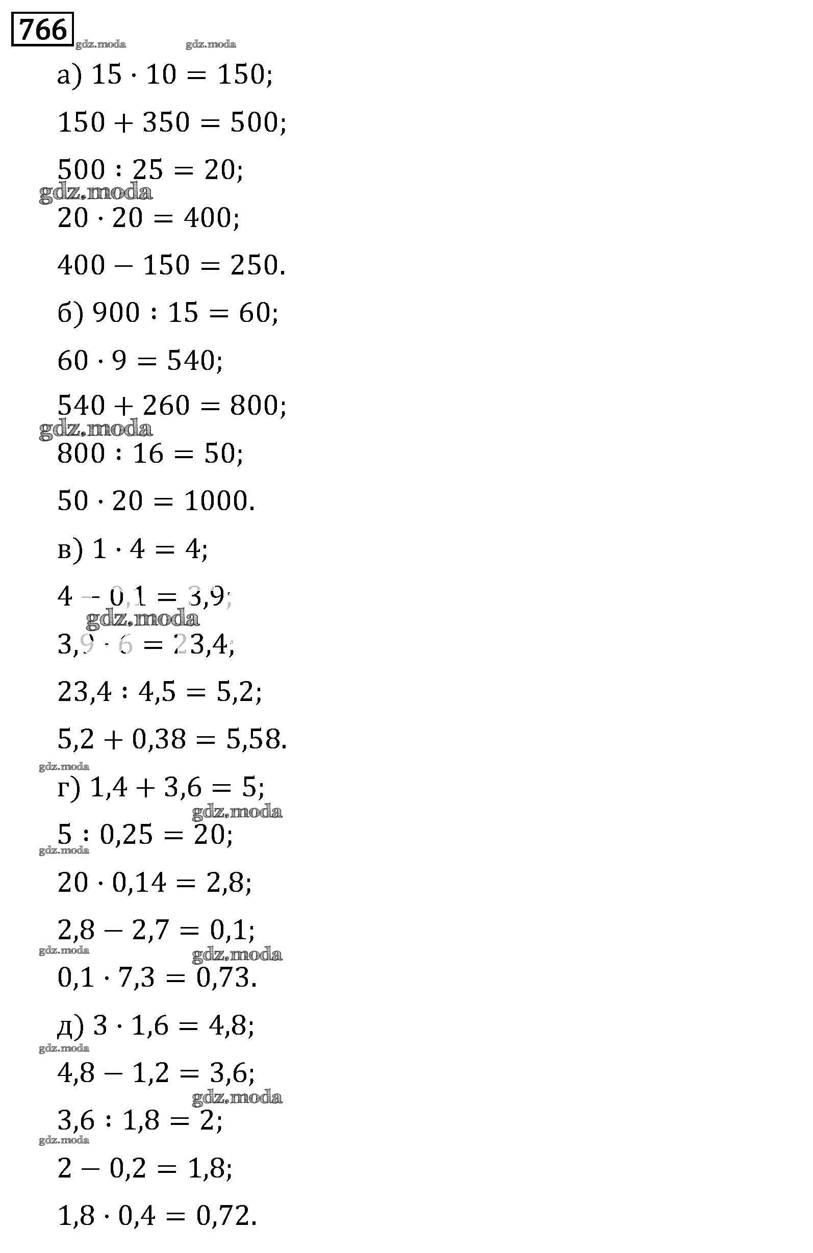 ОТВЕТ на задание № 766 Учебник по Математике 6 класс Виленкин