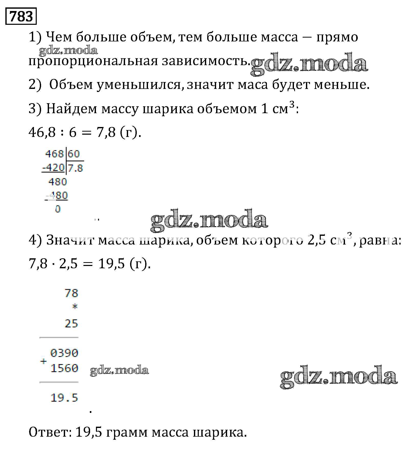 ОТВЕТ на задание № 783 Учебник по Математике 6 класс Виленкин