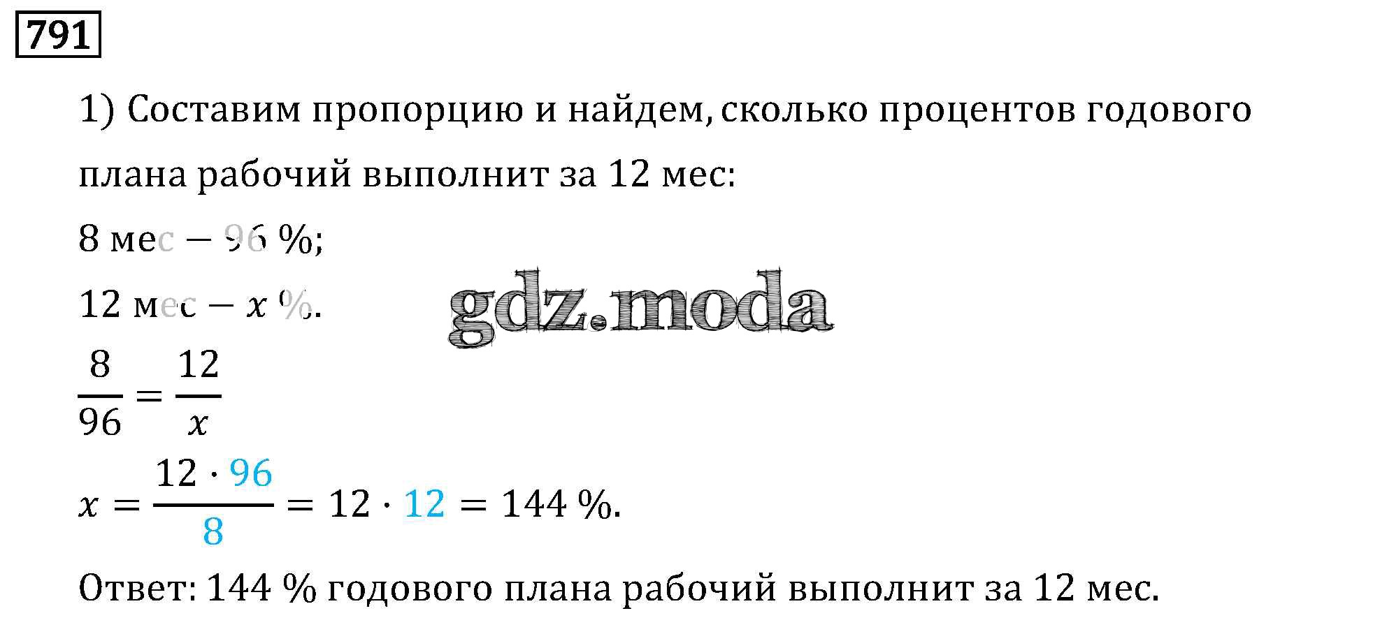 ОТВЕТ на задание № 791 Учебник по Математике 6 класс Виленкин
